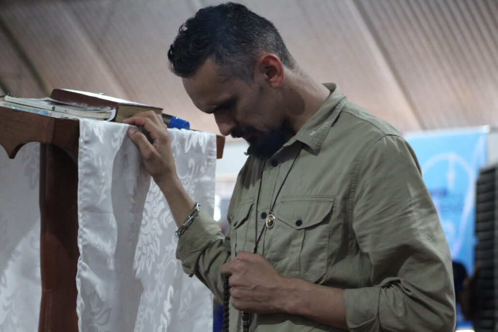 O missionário Raimundo Nonato de Noronha Júnior emocionou os participantes ao testemunhar como o Santo Terço o sustentou em meio à doença, depressão e dificuldades financeiras. Contou que, nos momentos em que não conseguia rezar, apenas segurava o terço, pedindo a ajuda da Virgem Maria.