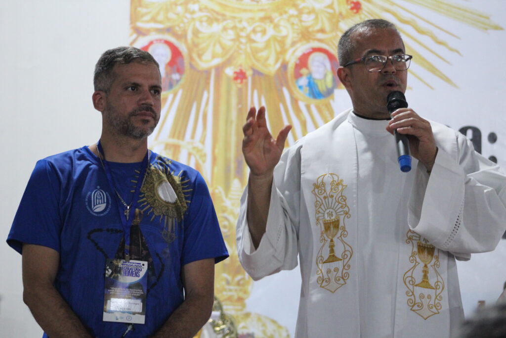 Falou sobre sua missão com a família e reforçou, com base em Josué 24,14-15, que a conversão de um homem transforma toda a casa. Inspirado por Lucas 1, apresentou Maria como a “nova Eva” e convidou os homens a erguerem o terço como arma espiritual: “Ninguém que se confia à Virgem Maria é por ela desamparado.”