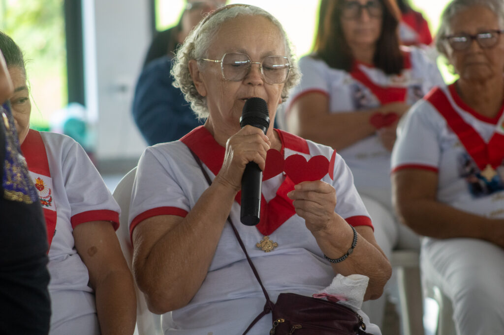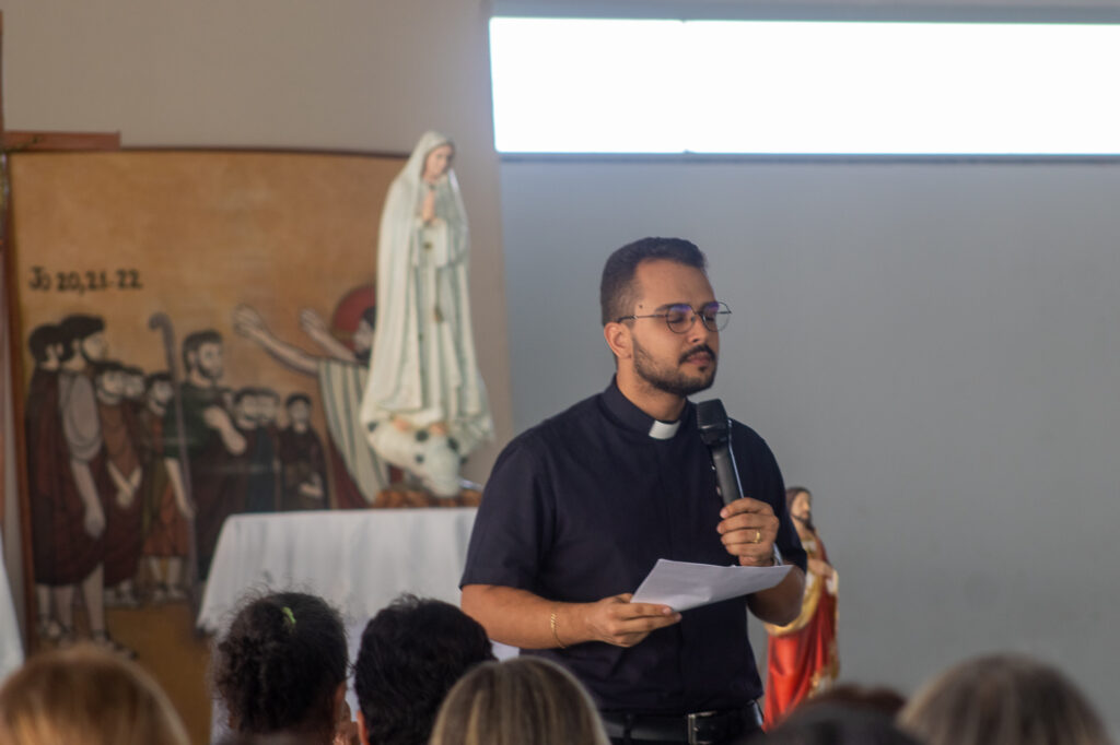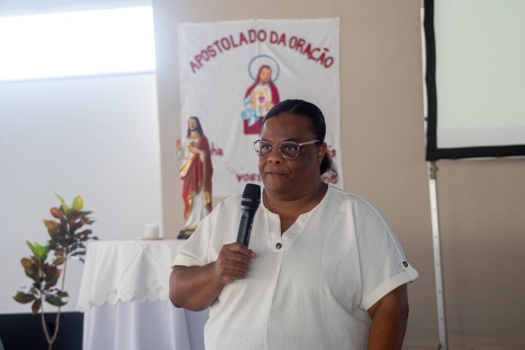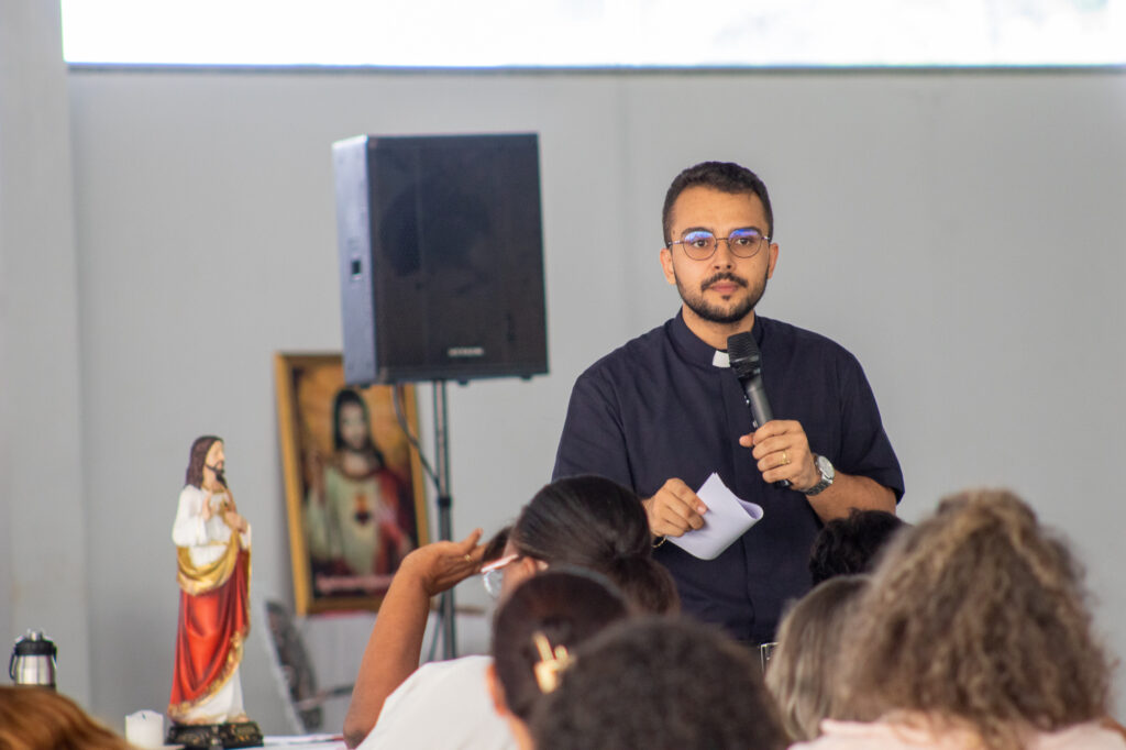 As atividades da tarde tiveram início com a ladainha do Sagrado Coração de Jesus, elevando a súplica e o louvor da assembleia. Logo depois, o Pe. Samuel Lima conduziu a palestra com o tema “Amor por Amor” (capítulo V da Dilexit Nos), convidando cada membro do Apostolado a renovar seu compromisso de entrega diária, união ao Coração de Cristo, oração pelas intenções do Santo Padre e testemunho de fé na vida cotidiana.