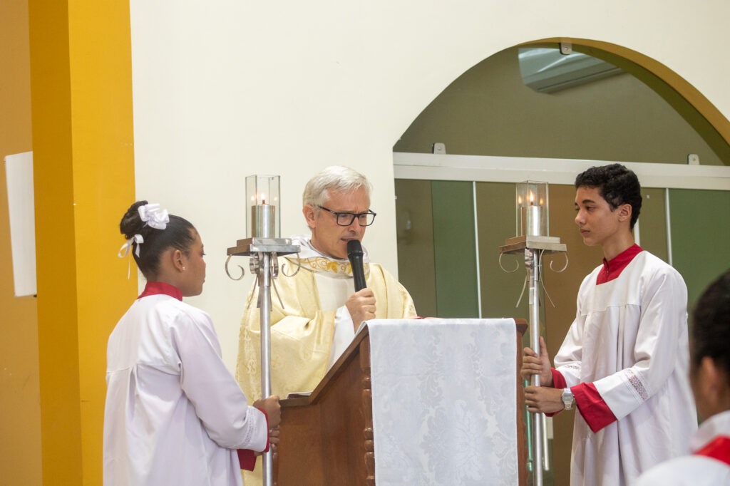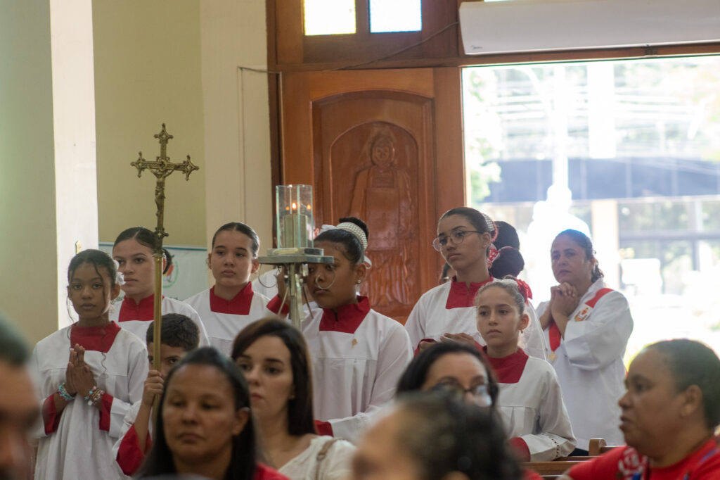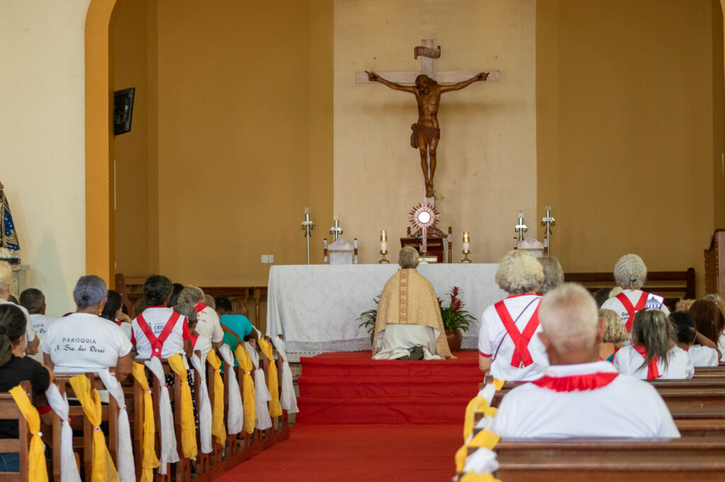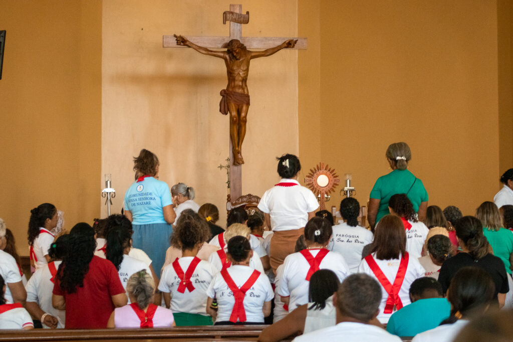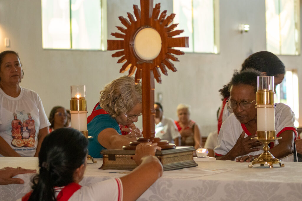Na sequência, as irmãs de Redenção conduziram a Adoração e Hora Santa, oferecendo aos participantes um momento profundo de recolhimento, silêncio e intimidade com o Senhor, no qual todos puderam apresentar suas intenções, necessidades e agradecimentos.