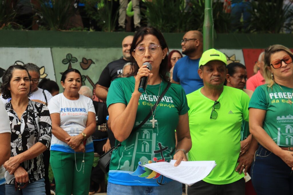 Na Praça da Capelinha, aconteceu a primeira parada: o café da manhã. Em seguida, a peregrinação prosseguiu até a Praça da Fundação, espaço simbólico para a reflexão sobre a “Urgência da Esperança”, conduzida pela viúva consagrada Cida Rangel.