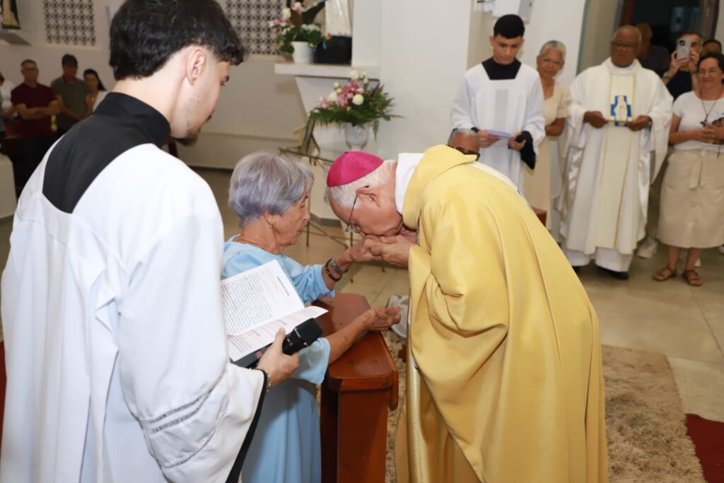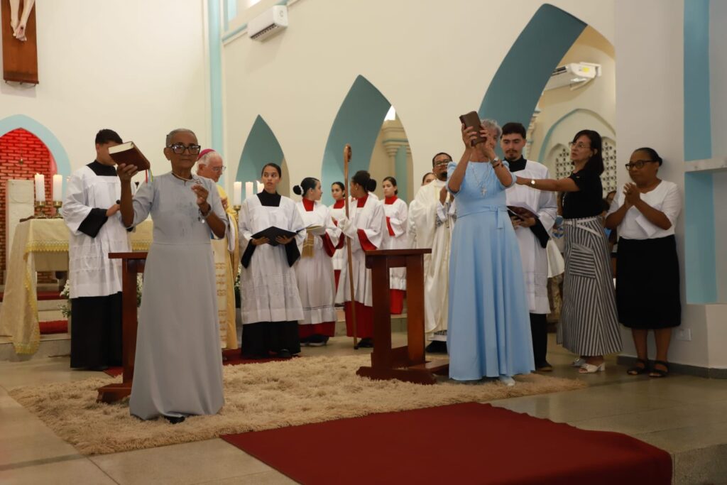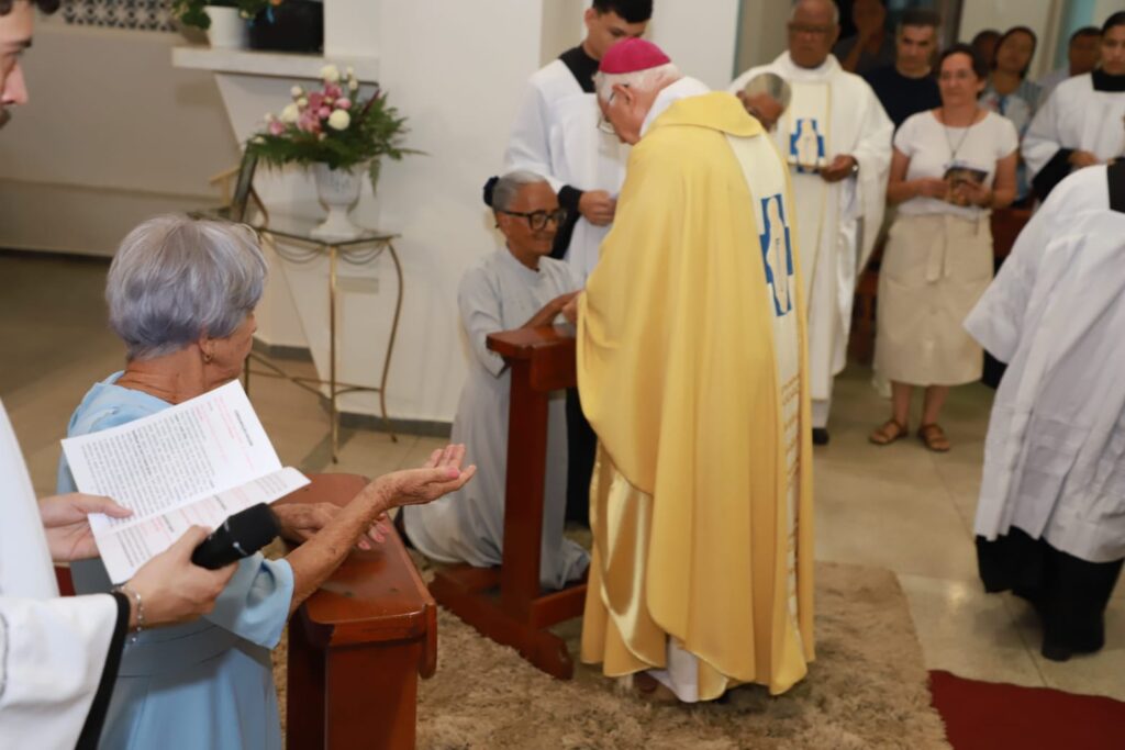 Antes da bênção final, Dom Dominique destacou com gratidão o crescimento da família consagrada diocesana e recordou o primeiro aniversário de consagração da viúva Aldenora, que recebeu, juntamente com as recém-consagradas, a renovação da bênção episcopal.
