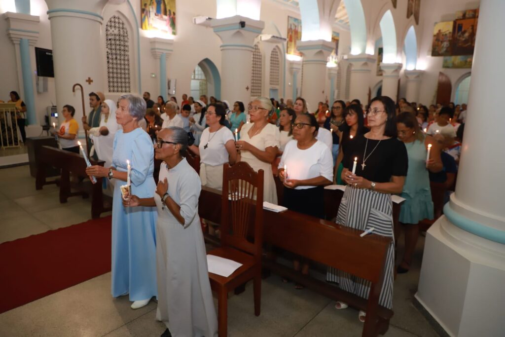 Durante o rito da bênção das velas, a assembleia foi convidada a caminhar ao encontro de Cristo, pedindo a graça de seguir o caminho da fé, da perseverança e da fidelidade, até alcançar a luz que não se apaga.