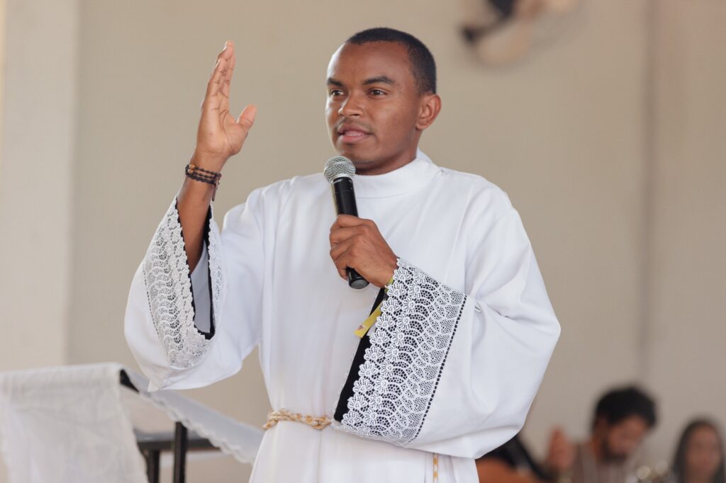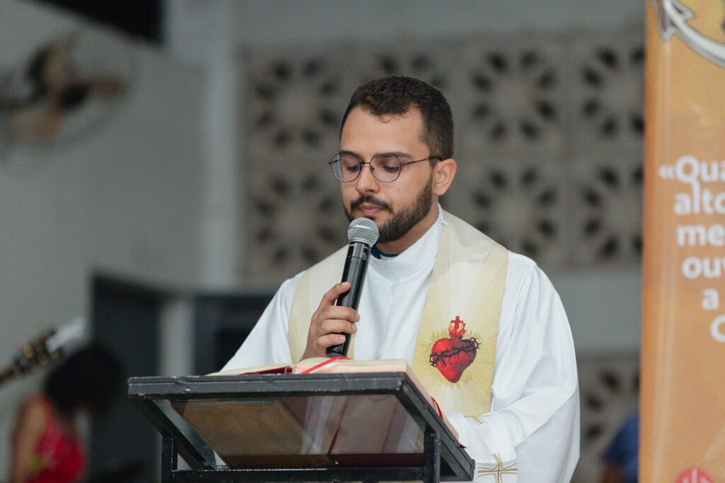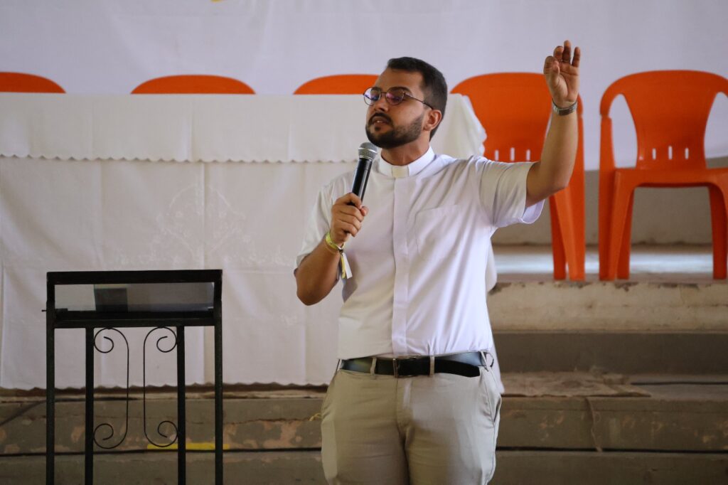Pe. Samuel destacou o uso das redes sociais como instrumento de evangelização e convidou os jovens a refletirem sobre como têm testemunhado sua fé no mundo digital.