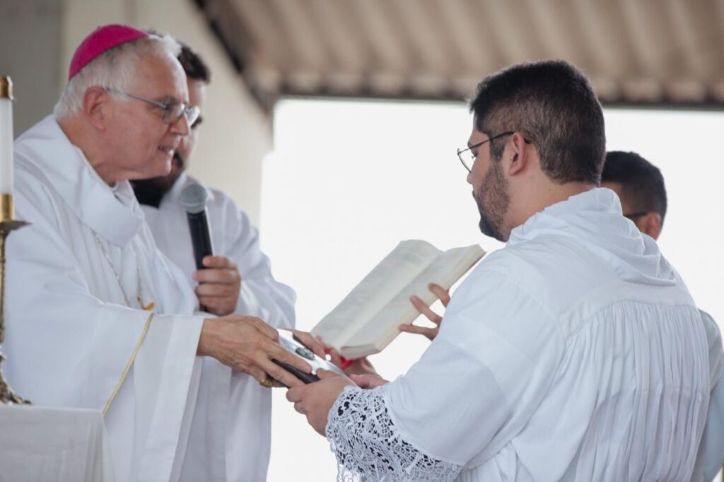 Após a homilia, foi realizado o rito de instituição: o seminarista Leisson recebeu o livro da Sagrada Escritura, com a missão de anunciá-la com fidelidade. Ao final, foi dirigida uma oração especial, pedindo que a Palavra se torne viva no coração dos fiéis por meio do ministério do novo leitor.
