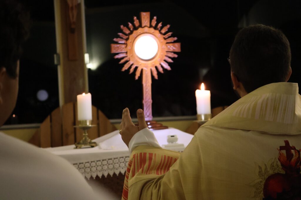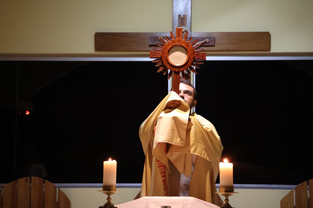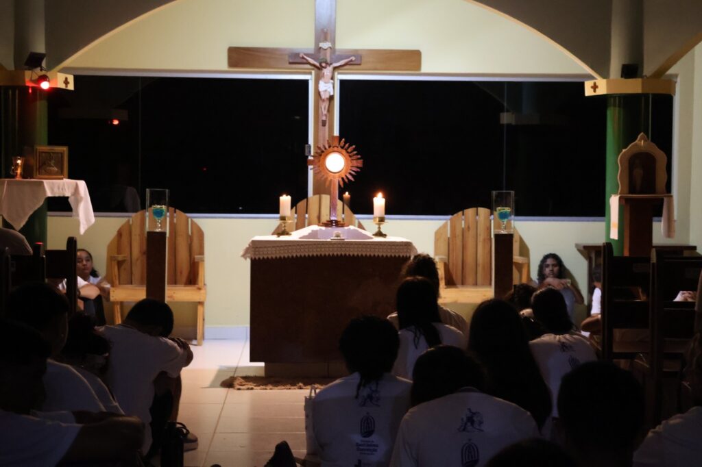 Ao final da peregrinação, os jovens viveram um momento profundo de Adoração ao Santíssimo Sacramento e confissões, renovando a fé e o compromisso com Cristo.